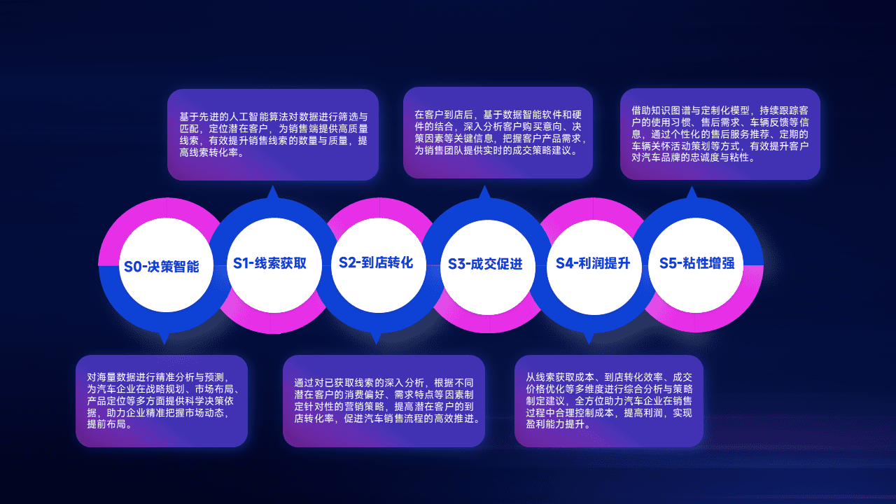 通过拓宽潜在客户来源、、优化线索分配并提高到店转化率,,以增强销售效率。。。。同时,,,利用线索数据不断优化分析模型,,,,有效提升转化率,,,,扩大营销影响力。。。。